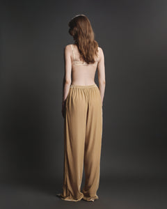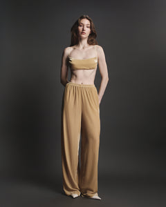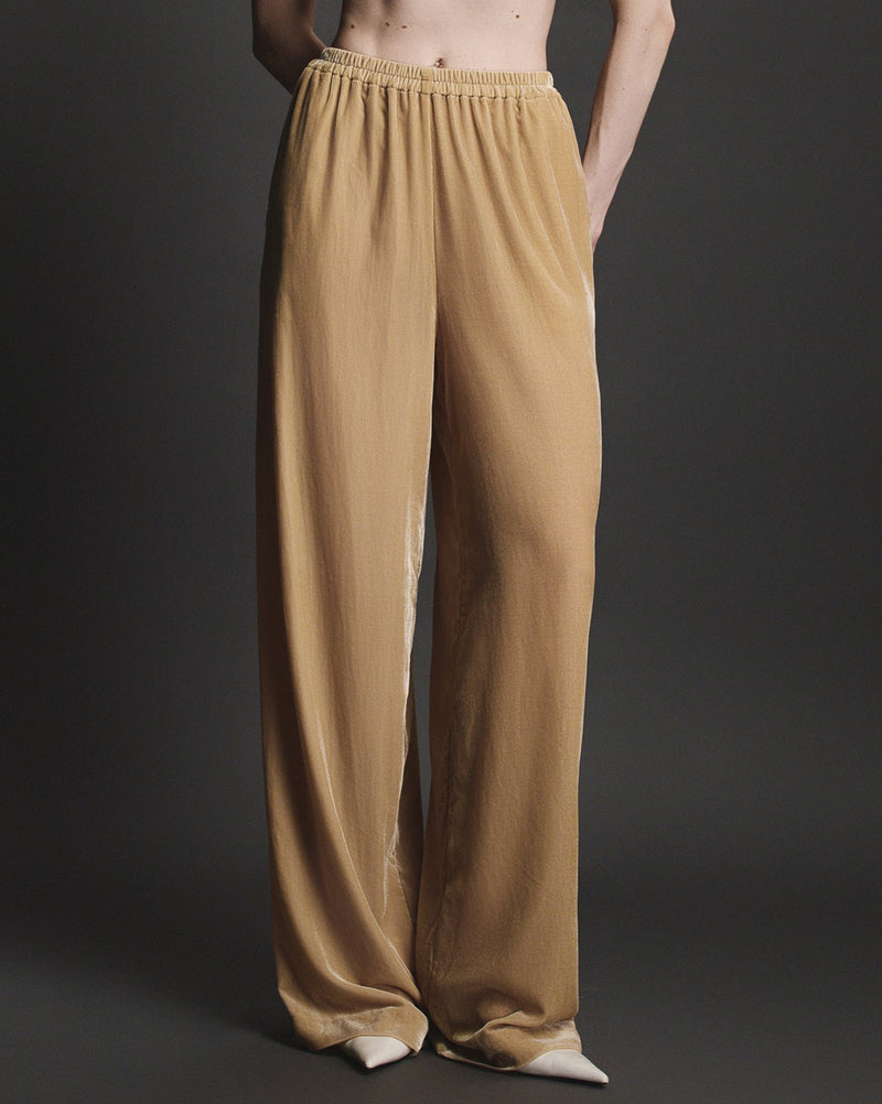 Palazzo pants in velvet with a fluid silhouette. Can be paired with the matching coat and top.